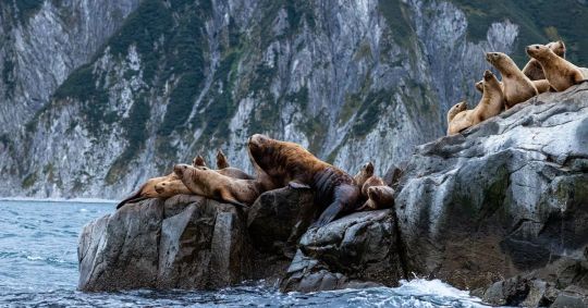 Её почти параллельные друг другу берега покрыты густым лесом, из которого в период нереста на берег выходят бурые медведи. На резиновых лодках «Зодиаках» исследуем бухту: подплывём к небольшому лежбищу тюленей-сивучей и увидим остовы брошенных судов.