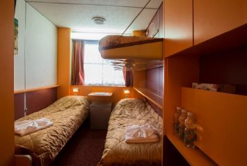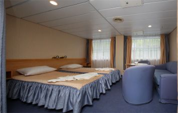 Для размещения пассажиров на судне имеется оборудованные индивидуальными санитарными блоками (душ, туалет, умывальник) , кондиционерами и телевизорами 2- и 3-местные каюты, а в каютах класса Полулюкс имеется холодильник. К услугам путешественников ресторан, 2 бара, музыкальный салон, конференц-зал, киноконцертный зал, парикмахерская, медицинский пункт, сувенирный киоск, гладильная комната и солярий на солнечной палубе.