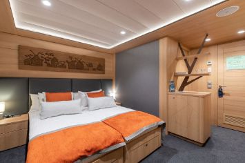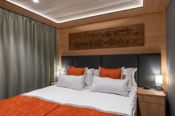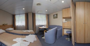 Для размещения пассажиров на головном судне серии имеются оборудованные индивидуальными санитарными блоками (душ, туалет, умывальник), холодильниками и кондиционерами две каюты класса «люкс трёхместный», 32 каюты класса «делюкс двухместный», 12 кают класса «делюкс трёхместный», три двухместные одноярусные каюты.